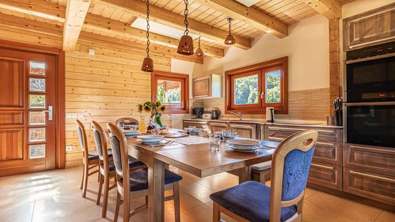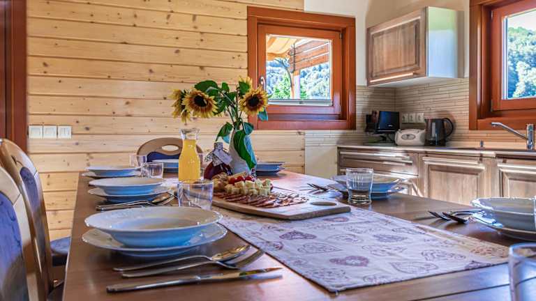 Das klimatisierte Chalet im House of Nature Tajhte verfügt über zwei Schlafzimmer, ein Wohnzimmer und eine voll ausgestattete Küche. Es gibt auch ein Badezimmer mit einer Dusche und kostenlosen Pflegeprodukten. Handtücher und Bettwäsche werden gestellt, um Ihnen einen angenehmen Aufenthalt zu ermöglichen.