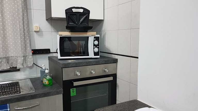 Die Ferienwohnung besteht aus einem Schlafzimmer und einem Wohnzimmer. Eine voll ausgestattete Küche ist vorhanden, die mit einem Kühlschrank und einer Kaffeemaschine ausgestattet ist. Das Badezimmer bietet ein Bidet und eine Dusche. Handtücher und Bettwäsche werden gestellt.