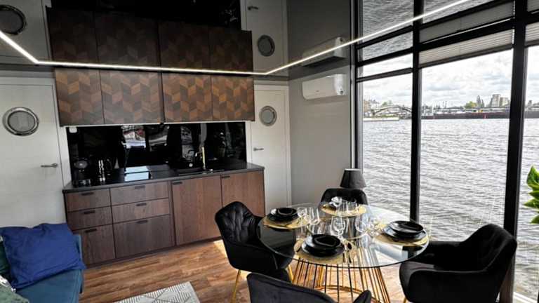 Das Houseboat EnergyApart verfügt über eine Sauna und bietet klimatisierte Wohneinheiten mit kostenlosem WLAN. Die Unterkunft bietet eine Terrasse mit Stadtblick und einen Sitzbereich.