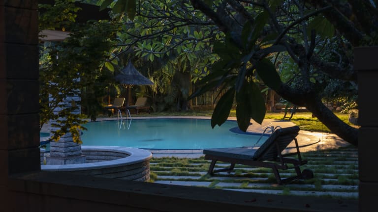 Das Hoysala Village Resort in Belūr bietet seinen Gästen einen angenehmen Aufenthalt mit einer Vielzahl von Annehmlichkeiten. Entspannen Sie am Außenpool, erkunden Sie den schönen Garten oder genießen Sie einen Drink in der Gemeinschaftslounge oder an der Bar. Das Resort bietet auch einen Kinderspielplatz und eine 24-Stunden-Rezeption. Die Zimmer sind geräumig und verfügen über einen Sitzbereich, einen Flachbild-Sat-TV und ein eigenes Bad. Einige Zimmer bieten zudem einen Balkon mit Blick auf den Garten. Das Resort verfügt über eine Klimaanlage und einen Schreibtisch in allen Zimmern. Beginnen Sie Ihren Tag mit einem köstlichen kontinentalen Frühstück und probieren Sie regionale und indische Küche im hauseigenen Restaurant. Für Aktivitäten steht Ihnen Radfahren zur Verfügung.