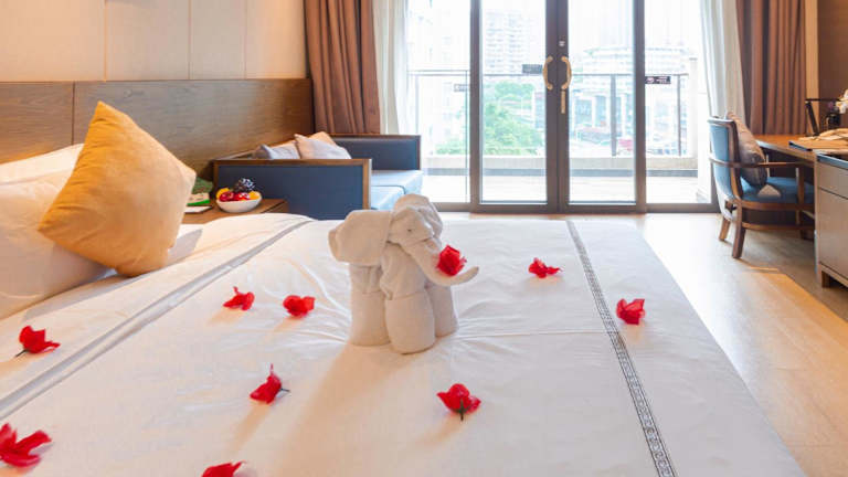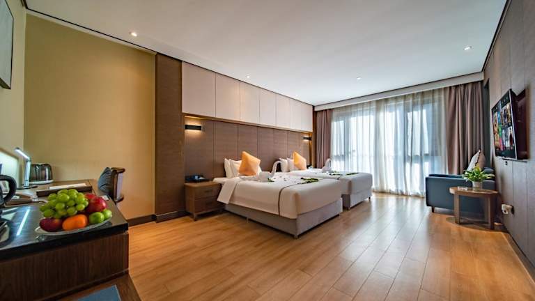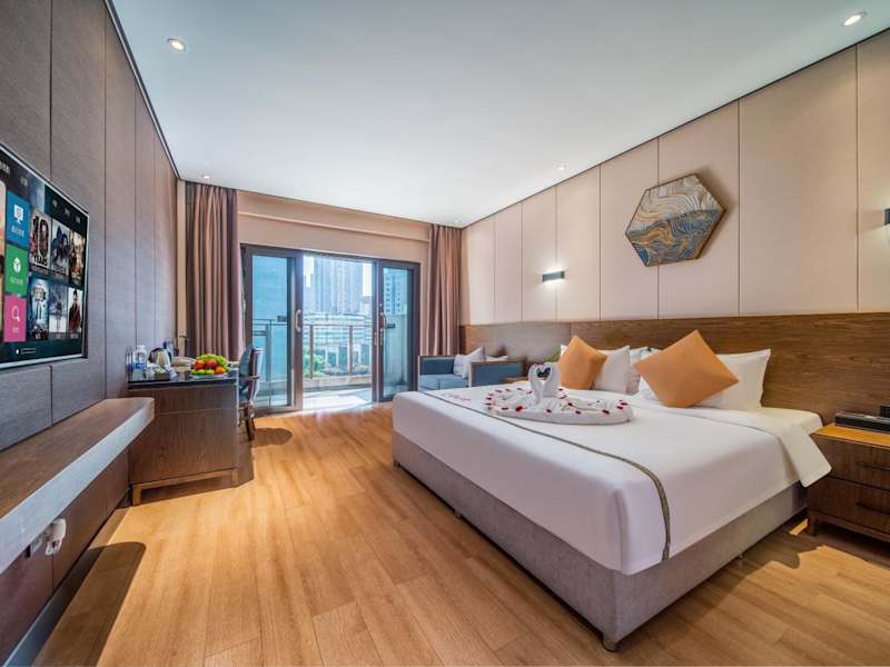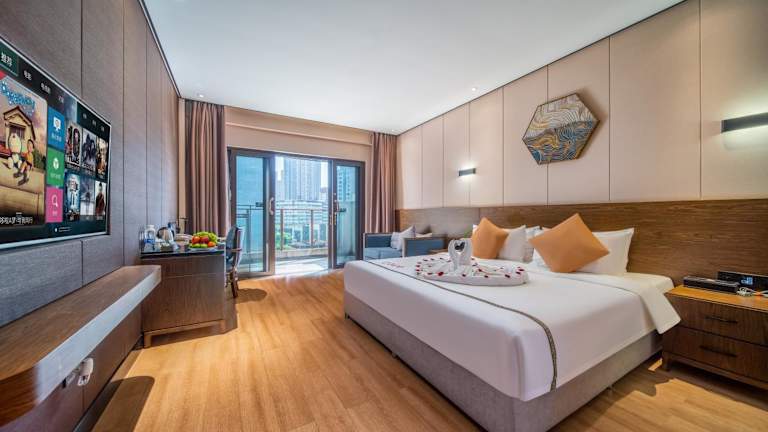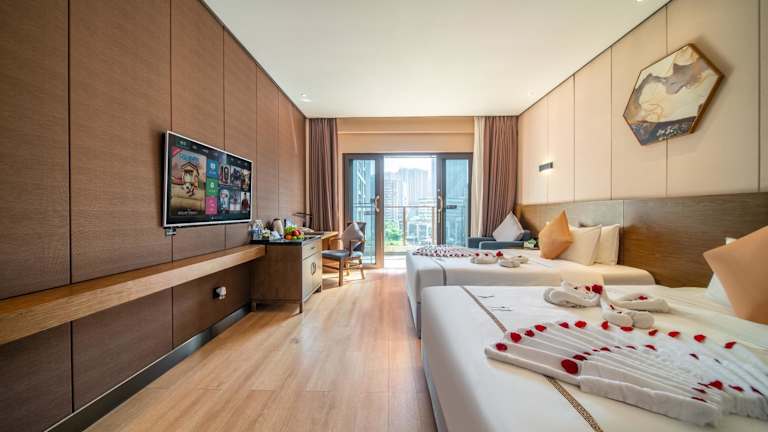 Die klimatisierten Zimmer im Huanyu Jun Hui Hotel sind komfortabel und stilvoll eingerichtet. Jedes Zimmer verfügt über einen Flachbild-Sat-TV, eine Minibar, einen Wasserkocher und einen Schreibtisch. Das Badezimmer ist mit einer Dusche und kostenfreien Pflegeprodukten ausgestattet. Bettwäsche und Handtücher werden gestellt, um Ihren Aufenthalt so angenehm wie möglich zu gestalten. Einige Zimmer bieten zudem einen Balkon mit herrlichem Bergblick.