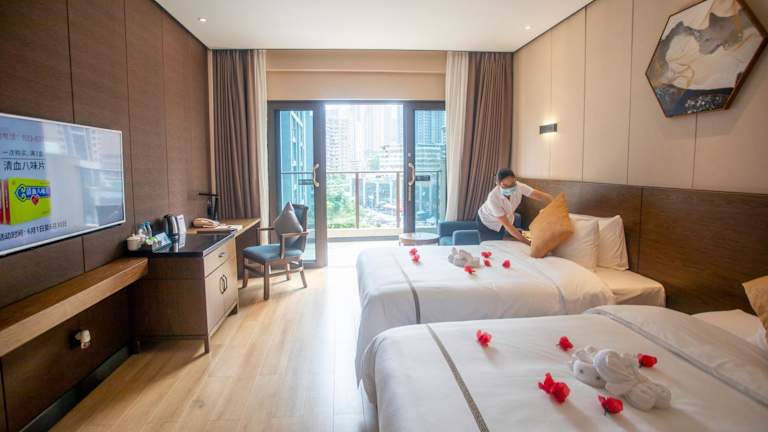 Das Huanyu Jun Hui Hotel in Shizhu ist ein charmantes Hotel mit einem schönen Garten und bietet seinen Gästen eine Vielzahl von Annehmlichkeiten. Genießen Sie köstliche Speisen im hoteleigenen Restaurant, lassen Sie sich von einem aufmerksamen Zimmerservice verwöhnen und profitieren Sie von der rund um die Uhr besetzten Rezeption und kostenlosem WLAN. Die klimatisierten Zimmer sind komfortabel eingerichtet und bieten Annehmlichkeiten wie einen Flachbild-Sat-TV, eine Minibar und kostenfreie Pflegeprodukte. Einige Zimmer verfügen über einen Balkon mit herrlichem Bergblick. Jeden Morgen erwartet Sie ein leckeres Frühstücksbuffet.
