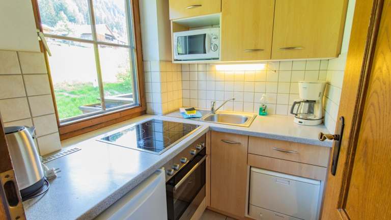 Die Ferienwohnung umfasst ein Schlafzimmer, ein Wohnzimmer, eine voll ausgestattete Küche mit Kühlschrank und Kaffeemaschine sowie ein Badezimmer mit Dusche und Badewanne. Handtücher und Bettwäsche werden bereitgestellt.