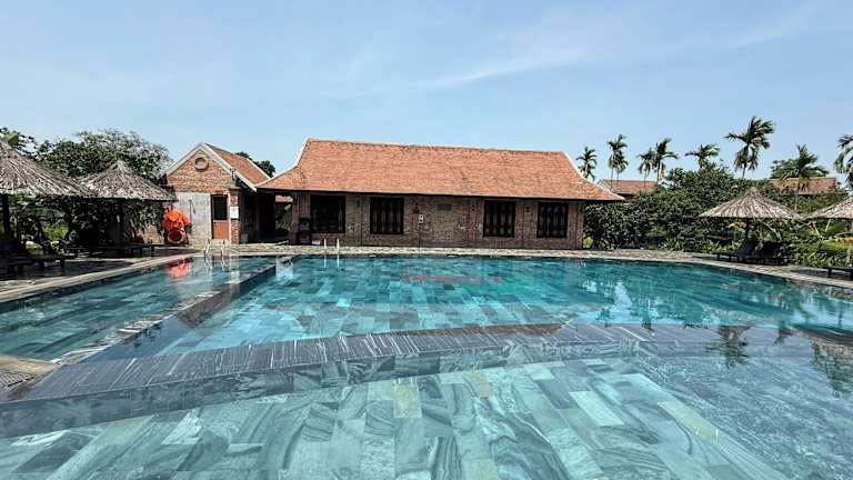 Die Hue Ecolodge ist eine ruhige und komfortable Unterkunft in Hue, die Ihnen einen entspannten Aufenthalt bietet. Mit ihrem Außenpool, dem schönen Garten und kostenfreien Privatparkplätzen erfüllt sie alle Anforderungen an eine erholsame Unterkunft. Das kostenlose WLAN in allen Bereichen der Unterkunft ermöglicht es Ihnen, jederzeit mit der Welt verbunden zu bleiben. Die gut ausgestatteten Zimmer bieten Ihnen den Komfort, den Sie sich wünschen, mit Klimaanlage, Safe, Minibar und Moskitonetzen. Das Badezimmer ist mit Handtüchern, Hausschuhen und einer Dusche ausgestattet. Die 24-Stunden-Rezeption steht Ihnen jederzeit zur Verfügung und das Hotel bietet auch Geldwechsel und Flughafentransfers. Verwöhnen Sie sich mit einer entspannenden Massage im Spa oder genießen Sie köstliche Mahlzeiten im hoteleigenen Restaurant. Eine Autovermietung und kostenlose Fahrräder stehen ebenfalls zur Verfügung. Die Hue Ecolodge ist günstig gelegen, nur 1,9 km von der Thien Mu-Pagode und 3,3 km von den Kaisergräbern von Tu Duc Hue entfernt. Der nächstgelegene Flughafen, der Flughafen Phú Bài, ist nur 18 km von der Unterkunft entfernt.