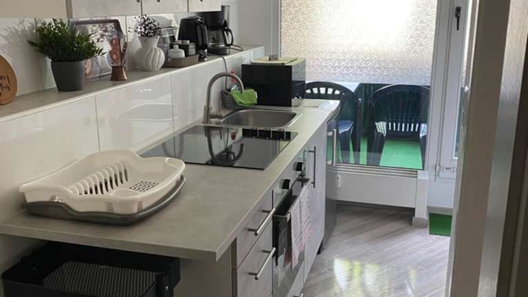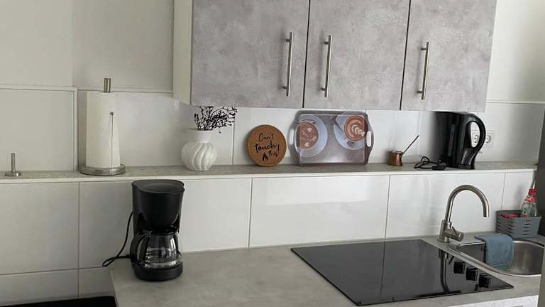 Die Ferienwohnung umfasst 1 Schlafzimmer, eine Küche mit Kühlschrank und Ofen, einen Flachbild-TV, einen Sitzbereich und ein Badezimmer mit Dusche. Handtücher und Bettwäsche werden bereitgestellt.