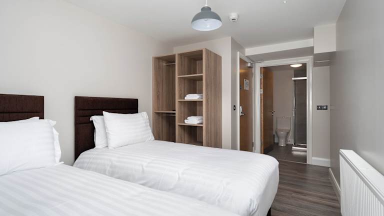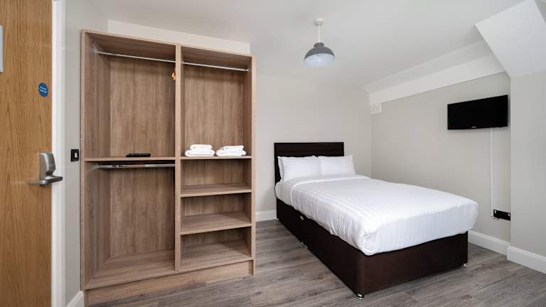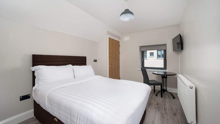 Die Zimmer sind ausgestattet mit einem Schreibtisch, Flachbild-TV, eigenem Badezimmer, Bettwäsche und Handtüchern. Auch ein Kleiderschrank gehört zur Zimmerausstattung. Die tägliche Reinigung ist ebenfalls Bestandteil des Angebots.