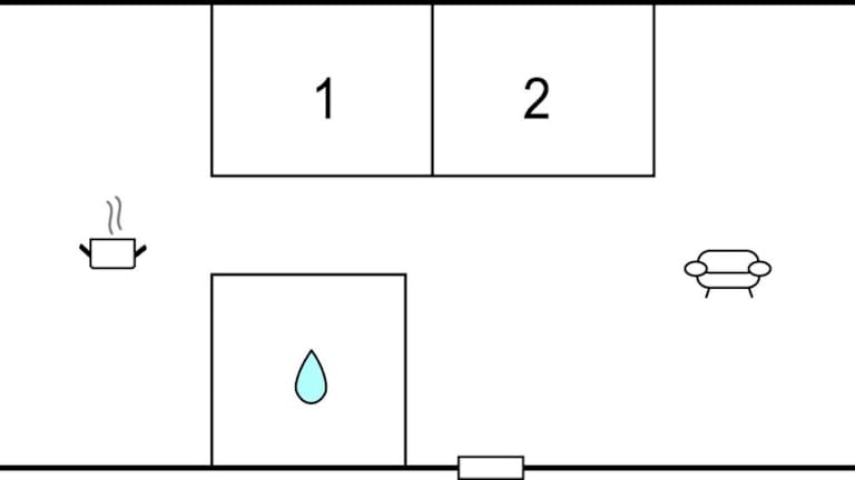 Das Ferienhaus umfasst zwei Schlafzimmer, ein Wohnzimmer und eine voll ausgestattete Küche, die mit einem Kühlschrank und einer Kaffeemaschine ausgestattet ist. Des Weiteren verfügt es über ein Badezimmer mit einer Dusche und einen Fernseher.