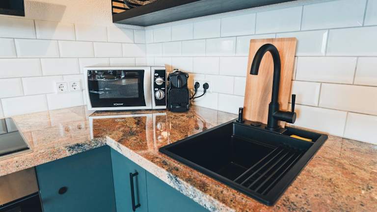 Die Ferienwohnung verfügt über zwei Schlafzimmer, ein Wohnzimmer sowie ein Badezimmer mit Dusche. Zur Ausstattung gehören ein Flachbild-TV und eine gut ausgestattete Küche mit Kühlschrank und Geschirrspüler. Handtücher und Bettwäsche werden bereitgestellt. Eine Terrasse ermöglicht eine Aussicht auf die umliegenden Berge.