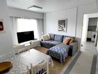 Das Apartment im Erdgeschoss der Huoneisto Villa Kaitera verfügt über 2 Schlafzimmer, eine gut ausgestattete Küche mit Kühlschrank und Geschirrspüler, ein gemütliches Wohnzimmer und einen Flachbild-TV. Handtücher und Bettwäsche werden gestellt, so dass Sie sich um nichts kümmern müssen. Ein besonderes Highlight ist die Sauna, in der Sie sich nach einem langen Tag voller Aktivitäten entspannen können.