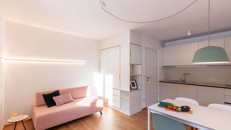 Die Ferienwohnung verfügt über einen Balkon mit Stadtblick, ein Schlafzimmer, ein Wohnzimmer, einen TV, eine gut ausgestattete Küche mit Kühlschrank und Geschirrspüler sowie ein Badezimmer mit Dusche. Handtücher und Bettwäsche werden bereitgestellt.