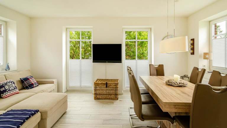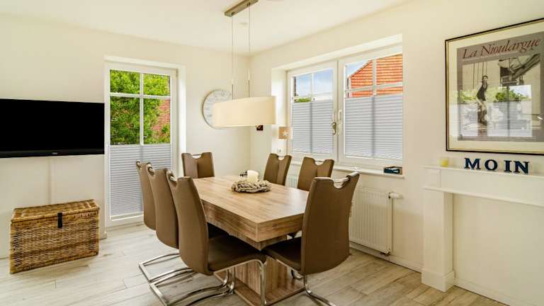 Das Hus Wittdün Deck 1 Baltrum bietet Selbstversorgungsmöglichkeiten mit seiner voll ausgestatteten Küche. Sie können Ihre eigenen Mahlzeiten zubereiten und diese im Essbereich des Apartments genießen. Alternativ können Sie auch eines der Restaurants in der Nähe besuchen und die lokale Küche erkunden.