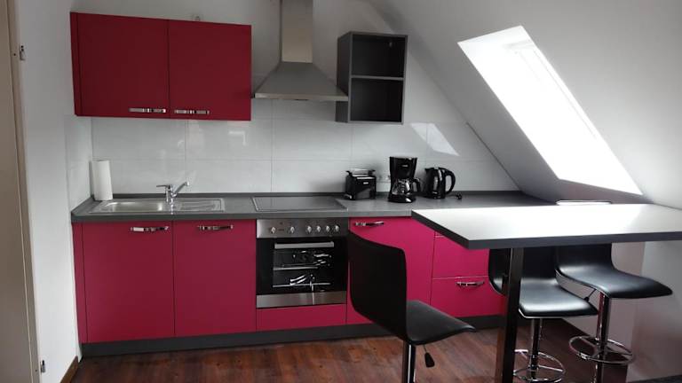 Die Wohneinheiten im Huus Veertein sind mit Parkettböden ausgestattet und verfügen über eine voll ausgestattete Küchenzeile mit Kühlschrank, Ofen, Mikrowelle, Herdplatte, Kaffeemaschine und Wasserkocher. Zudem bieten die Zimmer einen Flachbild-TV mit Satellitenkanälen und ein eigenes Badezimmer mit Dusche und Haartrockner. Eine Terrasse steht ebenfalls zur Verfügung.