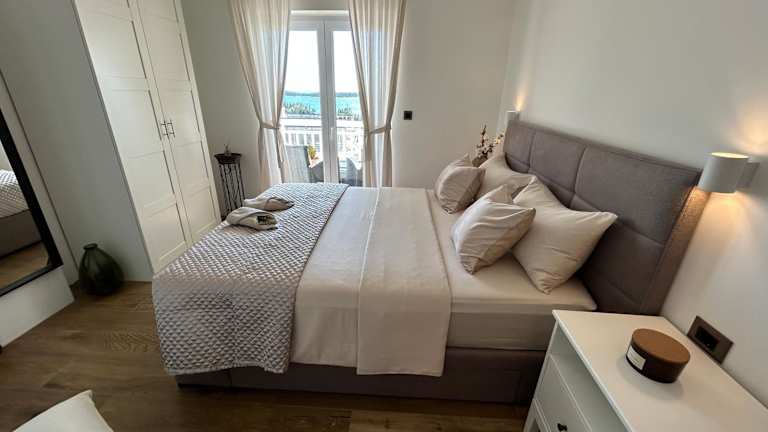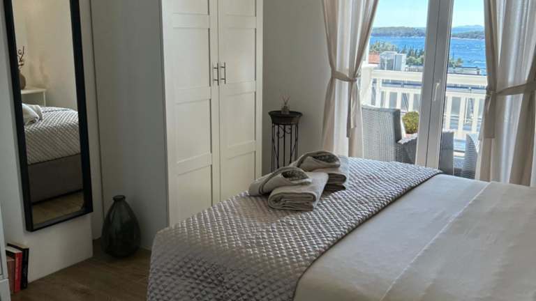 Die Zimmer der Ferienwohnung bieten kostenfreies WLAN, Klimaanlage und einen Balkon mit Meerblick. Sie sind ausgestattet mit einem Satelliten-Flachbild-TV sowie notwendigen Handtüchern und Bettwäsche. Zudem stehen ein Garten und eine Terrasse zur Verfügung. Den Gästen werden schallisolierte Zimmer sowie Heizung geboten.