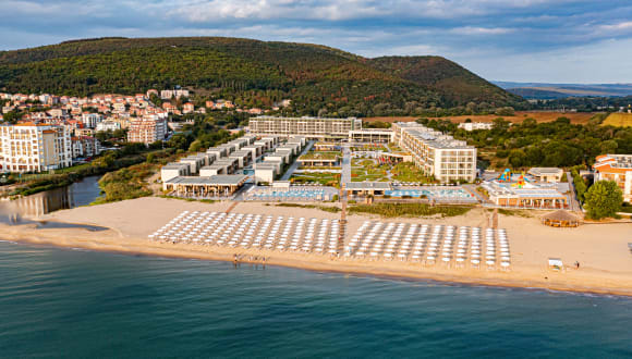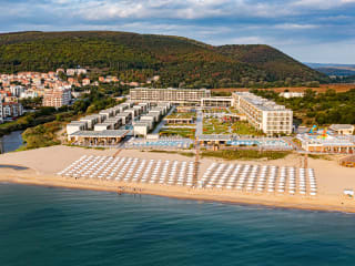 Das neu erbaute Hotel der beliebten HVD Gruppe liegt unmittelbar am wunderschoenen, kilometerlangen, feinsandigen und flach abfallenden Strand von Obzor, neben dem Schwesterhotel HVD Clubhotel Miramar. Alle Annehmlichkeiten des Schwesterhotels koennen mitgenutzt werden. Im HVD Miramar Deluxe befinden sich 2 Swimmingpools fuer Erwachsene, 2 Kinderpools mit Wasserrutschen fuer Kleinen, Sonnenterasse, Liegen, Schirme am Pools und am Strand kostenfrei, Poolbar, Beachbar. Empfangsbereich und Rezeption im Schwesterhotel HVD Clubhotel Miramar / Shuttleservice zum Deluxe Zimmer inklusive/ WLAN, 1 Buffetrestaurant, Burgerbar und 1 A-la-Carte Restaraunt / Steackhouse - 1 mal pro Aufenthalt mit Vorreservierung/. Landeskategorie 4 Sterne, 257 Wohneinheiten, Lift.