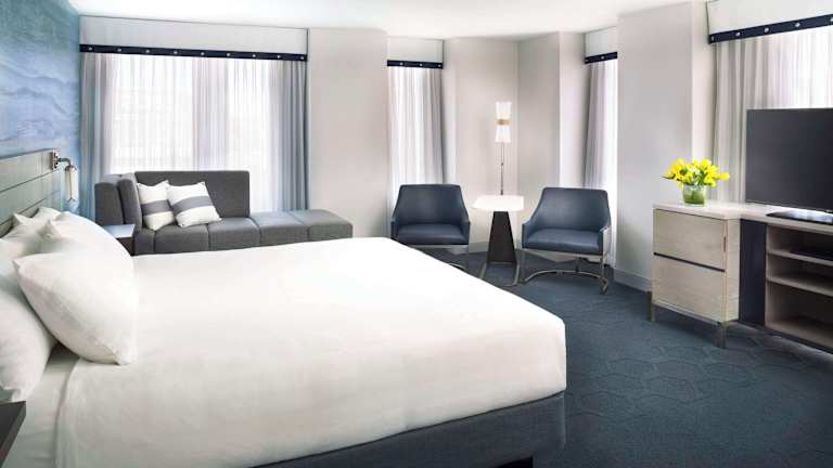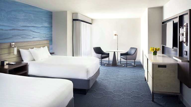 Die 313 Zimmer des Hyatt Fisherman's Wharf erstrecken sich über 5 Etagen und sind über einen Aufzug erreichbar. Die Zimmer sind modern eingerichtet und verfügen über Annehmlichkeiten wie einen Bluetooth-fähigen Media-Hub, eine iPod-Dockingstation, eine Kaffeemaschine, einen kleinen Kühlschrank und einen Laptop-Safe. Spa-Pflegeprodukte und kostenloses WLAN sind ebenfalls vorhanden.
