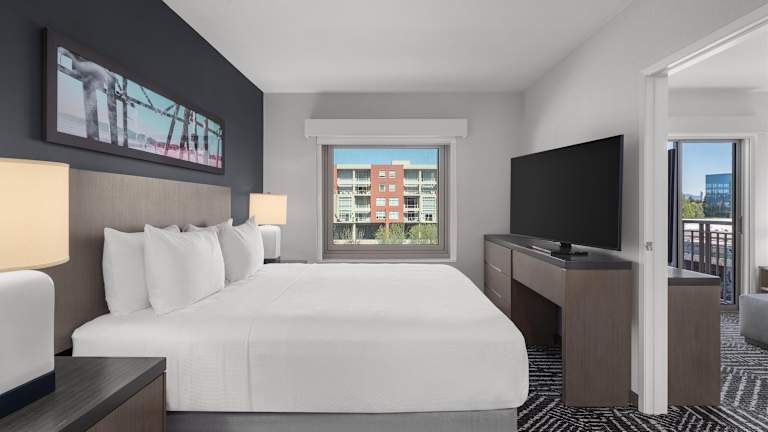 Die Zimmer im Hyatt House Emeryville sind geräumig und bieten einen ruhigen Rückzugsort mit allen Annehmlichkeiten, die Sie für einen komfortablen Aufenthalt benötigen. Jedes Zimmer verfügt über eine voll ausgestattete Küche, einen gemütlichen Sitzbereich, eine Klimaanlage und einen TV. Genießen Sie den Panoramameerblick und fühlen Sie sich wie zu Hause.