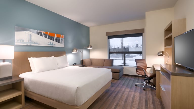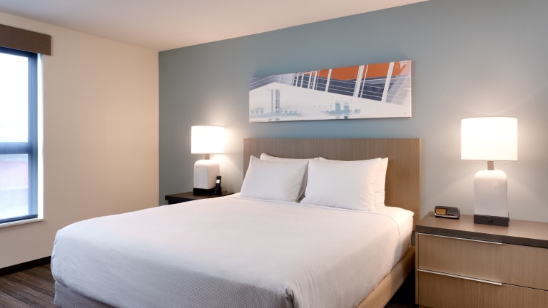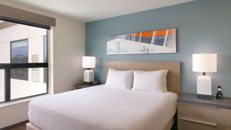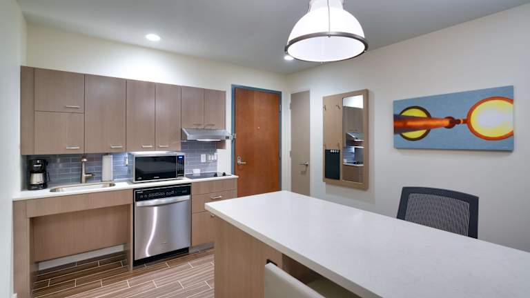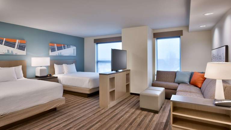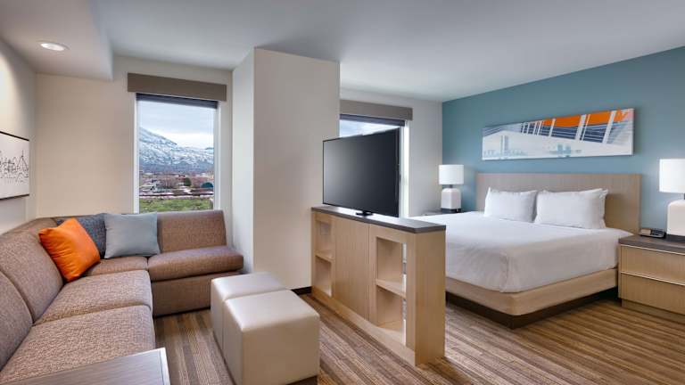 Die Gästezimmer in der Unterkunft Hyatt House Provo/Pleasant Grove verfügen über einen Sitzbereich, Klimaanlage und einen Schreibtisch.