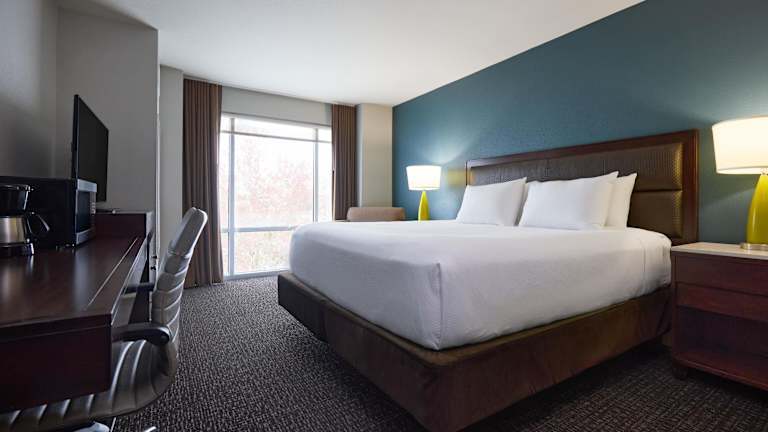 Die Zimmer im Hyatt House Seattle/Redmond sind klimatisiert und bieten eine moderne und komfortable Ausstattung. Jedes Zimmer verfügt über eine voll ausgestattete Küche, einen Flachbild-Kabel-TV im Sitzbereich und ein eigenes Badezimmer. Die Zimmer sind in verschiedenen Kategorien erhältlich, darunter Studios und Zimmer mit einem Schlafzimmer. Zur Entspannung können Sie die Terrasse mit Fensterwand und übergroßen französischen Türen nutzen.