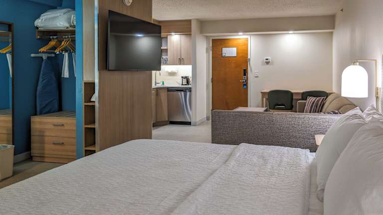 Die Zimmer im Hyatt Place Oklahoma City Airport sind modern und komfortabel eingerichtet. Jedes Zimmer verfügt über einen Sitzbereich mit einem Flachbild-TV und einem Schlafsofa. Zur weiteren Ausstattung gehören ein Kühlschrank, eine Kaffeemaschine, ein Bügeleisen/-brett und ein Haartrockner. Kostenfreies WLAN ist in allen Zimmern verfügbar.