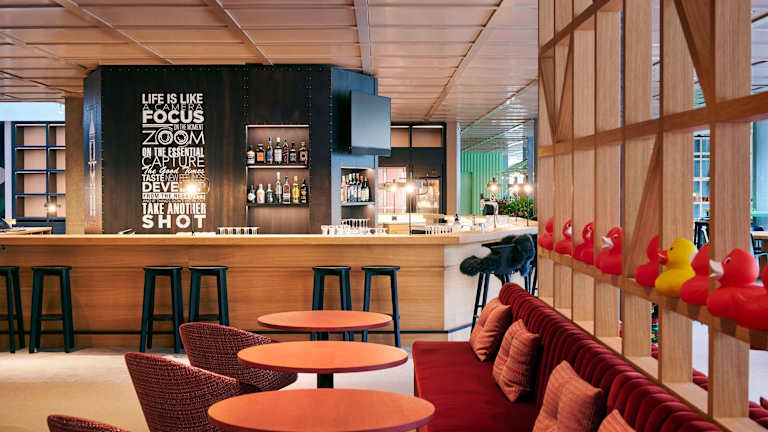 Jeden Morgen wird ein Frühstück in Buffetform angeboten. Zudem stehen vor Ort ein Restaurant und eine Bar zur Verfügung. Snacks und Getränke können an Verkaufsautomaten erworben werden.