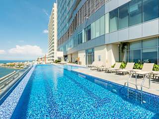 Das Hyatt Regency Cartagena befindet sich zentral im Stadtteil Bocagrande von Cartagena de Indias, in unmittelbarer Nähe zum Strand. Es ist umgeben von Einkaufsmöglichkeiten und Restaurants. Der internationale Flughafen Rafael Núñez ist etwa 7 km entfernt.