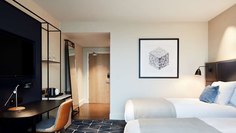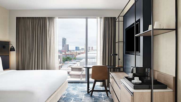 Die Zimmer im Hyatt Regency Manchester sind klimatisiert und mit Kingsize-Betten sowie raumhohen Fenstern ausgestattet. Jedes Zimmer verfügt über einen Schreibtisch, einen Flachbild-TV, eine Minibar und kostenloses WLAN. Die Badezimmer sind mit Duschen und Haartrocknern ausgestattet. Rollstuhlgerechte Zimmer mit barrierefreiem Bad stehen ebenfalls zur Verfügung.