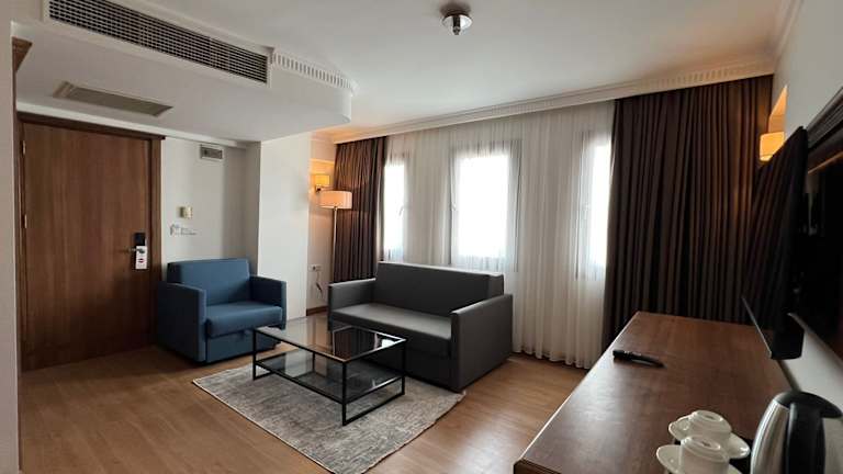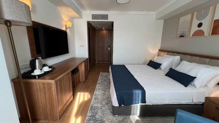 Alle Zimmer in der Unterkunft İstanblu Hotel&Spa sind mit einem Kleiderschrank und einem Flachbild-TV ausgestattet. Jedes Zimmer verfügt über ein eigenes Badezimmer mit Dusche und kostenlosen Pflegeprodukten. Die Zimmer bieten Stadtblick und sind mit Klimaanlage sowie einem Schreibtisch eingerichtet.