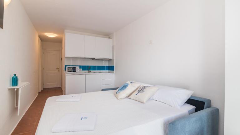 Die Ferienwohnung verfügt über eine Küchenzeile, ausgestattet mit einem Kühlschrank, einer Mikrowelle, einer Herdplatte, einer Kaffeemaschine und einem Wasserkocher.