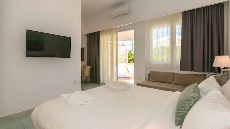 Das Hotel Iakinthos bietet 24 klimatisierte Zimmer und Suiten, die alle mit modernen Annehmlichkeiten ausgestattet sind. Jede Unterkunft verfügt über einen eigenen Balkon mit Meerblick, einen Minikühlschrank, einen TV und einen Safe. Die Zimmer sind komfortabel und bieten alles, was Sie für einen angenehmen Aufenthalt benötigen.