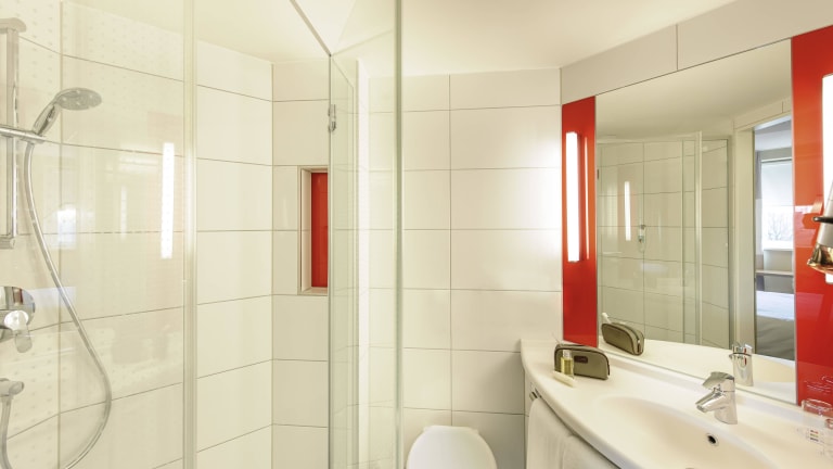 Liste der Zimmer: Zimmer mit 1 Doppelbett (160x200cm), neues Schlafkomfort-Konzept: Fast zu schade, um soviel Schlafkomfort alleine zu genießen: Das Sweet Bed by ibis Doppelbett hat reichlich Platz auch für 2 Personen. Mit regulierbarer Klimaanlage und Schallschutz. Das Zimmer hat einen Schreibtisch, Flatscreen-TV und gratis WLAN. Zimmer mit 2 Einzelbetten, neues Schlafkomfort-Konzept: Das perfekte Doppel: Die beiden Sweet Bed by ibis Einzelbetten verwöhnen mit höchstem Schlafkomfort. Das Zimmer ist schallisoliert, mit einstellbarer Klimaanlage. Zur Ausstattung zählen ein Schreibtisch und ein Flatscreen-TV. WLAN ist kostenfrei. Ausstattung des Zimmers: Klimaanlage, 220/240 V AC, Klimaanlage, Telefon, Standspiegel, WIFI im Zimmer, Automatischer Weckruf, RJ11-Steckdose Ausstattung im Badezimmer: Duschkabine, Haartrockner im Badezimmer