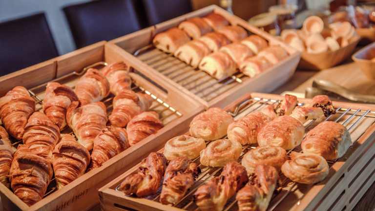 Das Hotel bietet ein Frühstücksbuffet mit einer Auswahl an süßen und herzhaften Speisen wie Eiern, Obstsalat, Joghurt und Säften. Es gibt auch Backwaren, französische Madeleine-Kuchen, ein heißes Getränk und ein Stück Obst zum Mitnehmen. Außerhalb der regulären Frühstückszeiten gibt es eine leichtere Option ab 04:00 Uhr.