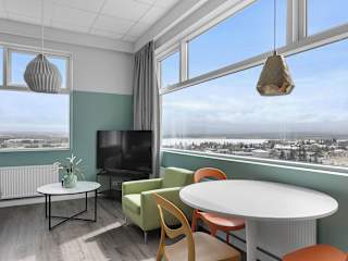 Das Icelandic Apartments ist 10 km vom Stadtzentrum von Reykjavik entfernt und 1,1 km vom See Ellidavatn entfernt. Die Residenz des isländischen Präsidenten, Bessastaðir, befindet sich 13 km entfernt. Das Einkaufszentrum Smáralind erreichen Sie vom Aparthotel nach 3,8 km. Die Lage in Kópavogur bietet auch Zugang zu vielen nahe gelegenen Naturattraktionen wie dem Golfplatz (5 km) und dem Skilift (25 km).
