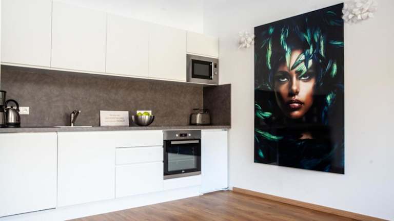 Die Unterkünfte im IchZeit Aparthotel sind modern und komfortabel eingerichtet. Jedes Apartment verfügt über einen Balkon mit Gartenblick, einen gemütlichen Sitzbereich und einen Flachbild-TV. Die voll ausgestattete Küchenzeile bietet alles, was Sie für die Zubereitung Ihrer eigenen Mahlzeiten benötigen, einschließlich Kühlschrank, Geschirrspüler, Backofen, Mikrowelle, Kochfeld, Kaffeemaschine und Wasserkocher. Das private Badezimmer ist mit einer Dusche und kostenlosen Pflegeprodukten ausgestattet.