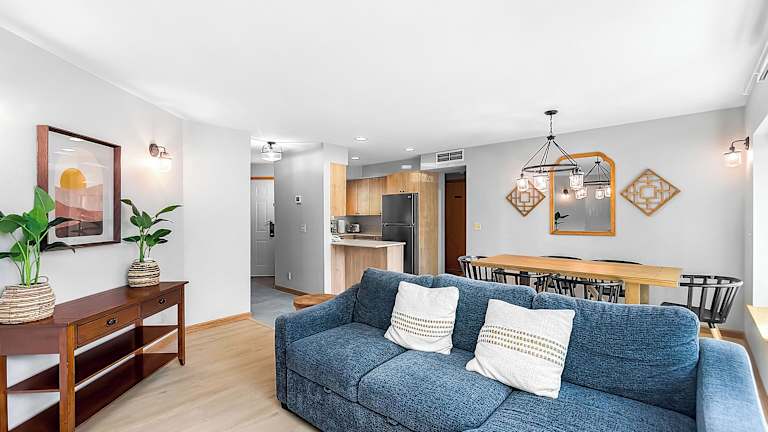 Icicle Village Resort Condo #407 bietet klimatisierte Wohneinheiten, die mit einem Balkon mit Bergblick ausgestattet sind. Die Unterkunft umfasst einen Whirlpool sowie einen Außenpool.