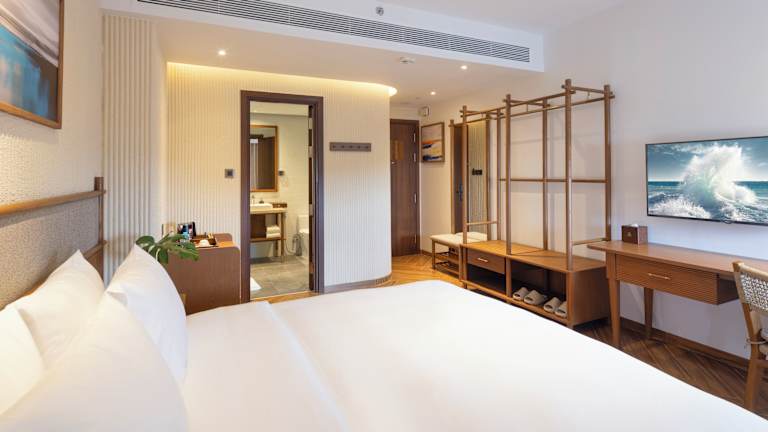 Die Zimmer im Iconic Long Hai Hotel sind mit Klimaanlage, einem Schreibtisch und einem Balkon mit Meerblick ausgestattet. Jedes Zimmer verfügt über ein eigenes Badezimmer, einen TV sowie Bettwäsche und Handtücher. Einige Zimmer bieten Stadtblick und sind mit einem Safe ausgestattet. Weitere Annehmlichkeiten umfassen einen Kleiderschrank und einen Wasserkocher.