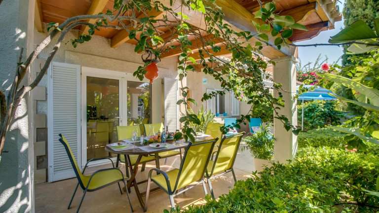 Das Ferienhaus verfügt über drei Schlafzimmer und zwei Badezimmer. Zur Ausstattung gehören Bettwäsche, Handtücher sowie ein TV mit Satellitenkanälen. Eine voll ausgestattete Küche ist ebenfalls vorhanden, und die Terrasse bietet einen Blick auf den Garten.