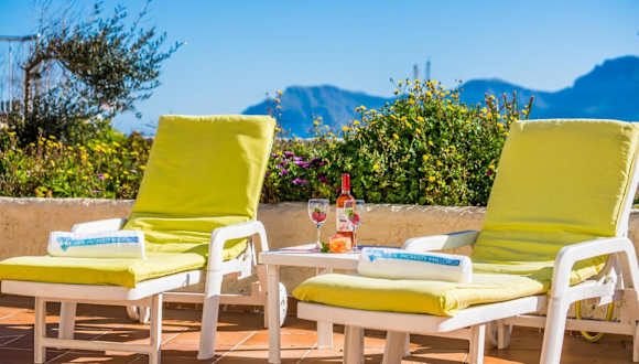 Das Ferienhaus verfügt über drei Schlafzimmer, zwei Badezimmer, Bettwäsche, Handtücher und einen Fernseher mit Satellitenkanälen. Die voll ausgestattete Küche ermöglicht eine Selbstversorgung. Eine Terrasse mit Meerblick ist ebenfalls vorhanden.