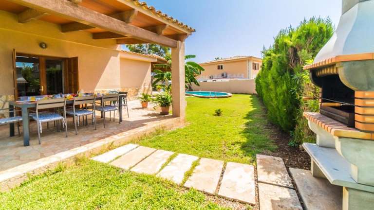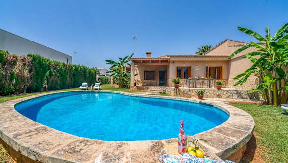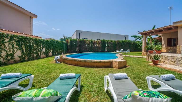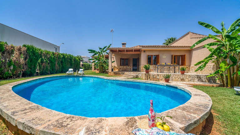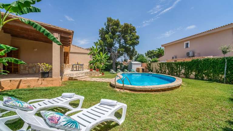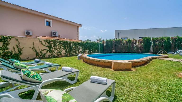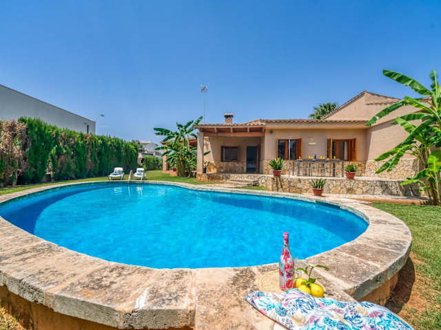 Ideal Property Mallorca - Rosas 28 ist ein Ferienhaus mit eigenem Pool, ideal für einen entspannenden Aufenthalt. Die Unterkunft bietet einen Garten mit Blick auf die Umgebung sowie eine Terrasse, die den Blick auf den Pool freigibt. Kostenfreies WLAN ist für die Gäste verfügbar.