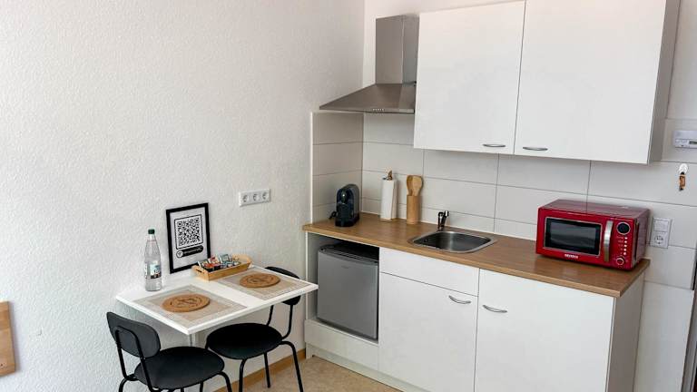 Die Ferienwohnung umfasst zwei Schlafzimmer, eine Küchenzeile mit Kühlschrank und Mikrowelle sowie ein Badezimmer mit Dusche und Haartrockner. Handtücher und Bettwäsche werden bereitgestellt. Die Unterkunft ist für Nichtraucher und beinhaltet Annehmlichkeiten wie Heizung und kostenfreies WLAN.