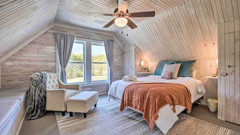 Verbringen Sie einen idyllischen Aufenthalt in der Hütte mit Feuergrube in Bells. Diese Unterkunft bietet Ihnen eine gemütliche Atmosphäre und liegt in der Nähe verschiedener Sehenswürdigkeiten. Genießen Sie den Komfort des klimatisierten Ferienhauses mit Flachbild-TV, DVD-Player und voll ausgestatteter Küche. Kostenfreies WLAN ist in allen Bereichen verfügbar. Entspannen Sie in der Dusche mit kostenfreien Pflegeprodukten und einem Haartrockner. Der Regionalflughafen McKellar-Sipes ist nur 25 km entfernt.