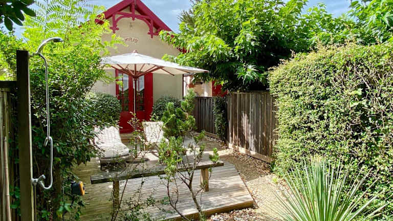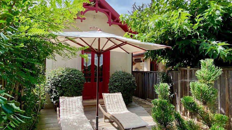 Das Idyllic Chalet in Lège-Cap-Ferret ist der perfekte Ort für einen entspannten Urlaub in der Nähe der Dünen von Cap Ferret. Das Ferienhaus bietet komfortable Zimmer, eine voll ausgestattete Küche und eine Terrasse mit Gartenblick. Der Strand Horizon ist nur 500 m entfernt und beliebte Sehenswürdigkeiten wie die Kapelle der algerischen Villa und der Leuchtturm Cap Ferret sind ebenfalls in der Nähe. Genießen Sie die Ruhe und Schönheit dieser idyllischen Umgebung.