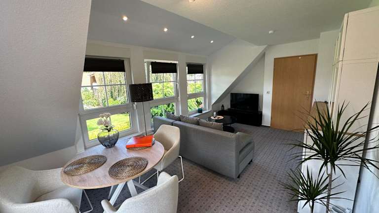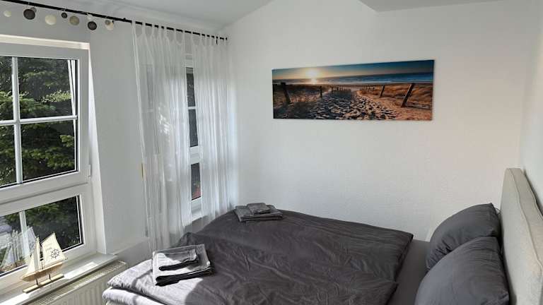 Die Ferienwohnung verfügt über ein Schlafzimmer und ein Wohnzimmer. Zur Ausstattung gehören ein Flachbild-TV sowie eine gut ausgestattete Küche mit Kühlschrank und Ofen. Des Weiteren gibt es ein Badezimmer mit Dusche. Handtücher und Bettwäsche werden bereitgestellt.