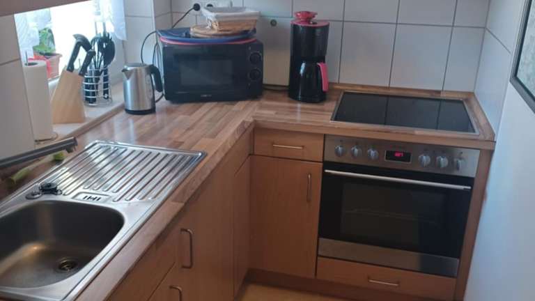 Die Unterkunft im Erdgeschoss verfügt über ein Schlafzimmer und ist mit einem Flachbild-TV sowie einer voll ausgestatteten Küche ausgestattet. Diese Küche beinhaltet einen Kühlschrank, einen Ofen, eine Waschmaschine, eine Mikrowelle und eine Herdplatte. Handtücher und Bettwäsche werden bereitgestellt.