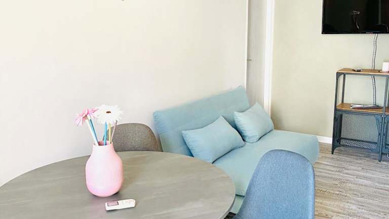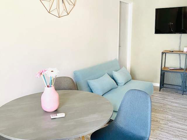 Das Ferienhaus besteht aus 2 Schlafzimmern, einem Wohnzimmer, einer voll ausgestatteten Küche mit Kühlschrank und einem Badezimmer, das ein Bidet und kostenlose Pflegeprodukte umfasst. Zudem sind handtücher und Bettwäsche vorhanden, und die Unterkunft bietet einen Balkon mit Gartenblick.