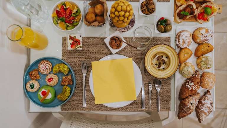 Jeden Morgen wird den Gästen ein typisch italienisches Frühstück im Speisesaal serviert. Das Frühstück umfasst heiße Getränke, Saft und Gebäck und bietet somit einen perfekten Start in den Tag. Zusätzlich steht den Gästen eine Gemeinschaftsküche zur Verfügung, in der sie sich Getränke und Snacks zubereiten können. In unmittelbarer Nähe des Hotels finden die Gäste auch eine Vielzahl von Restaurants, in denen sie die lokale Küche genießen können.