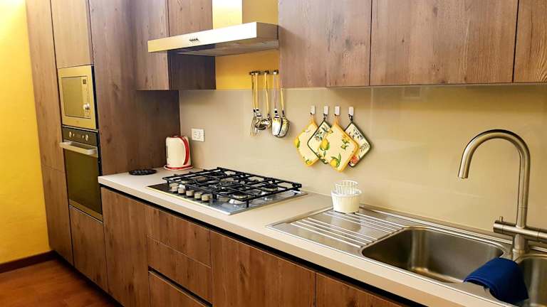 Die Ferienwohnung umfasst zwei Schlafzimmer, ein Wohnzimmer sowie eine voll ausgestattete Küche mit Kühlschrank und Kaffeemaschine. Zusätzlich stehen zwei Badezimmer mit Bidet und Dusche zur Verfügung. Handtücher und Bettwäsche werden bereitgestellt.