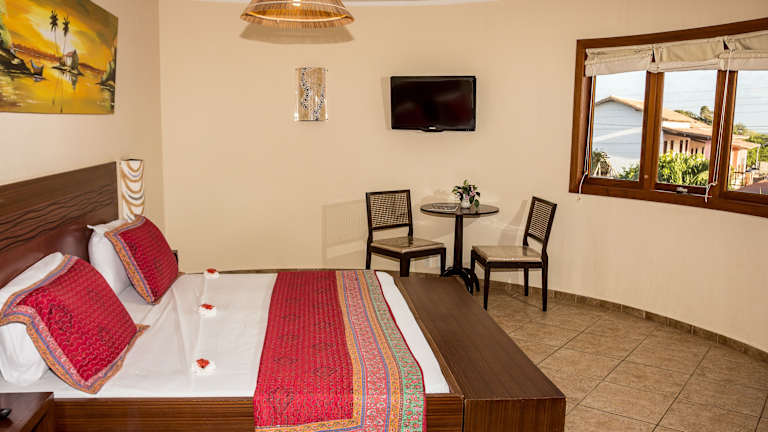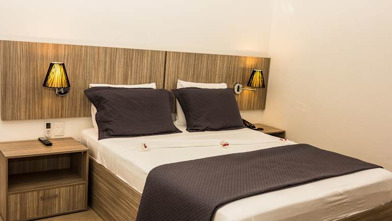 Die Zimmer sind ausgestattet mit Klimaanlage, Heizung und LCD-Sat-TV. Die meisten Zimmer verfügen über einen Balkon. Zur Standardausstattung gehören ein Minikühlschrank, ein Safe, ein Telefon und WLAN. Die Badezimmer sind mit einer Dusche und Badewanne sowie einem Haartrockner und Bademänteln ausgestattet. Es sind auch rollstuhlgerechte Zimmer verfügbar.