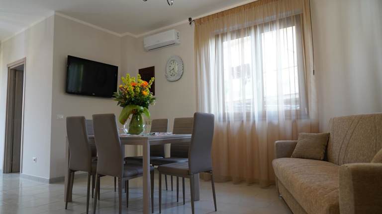 Das Ferienhaus verfügt über drei Schlafzimmer und ein Wohnzimmer. Es bietet eine voll ausgestattete Küche sowie ein Badezimmer mit Bidet und Dusche. Handtücher und Bettwäsche sind im Angebot enthalten. Klimaanlage und Heizung sind ebenfalls vorhanden.