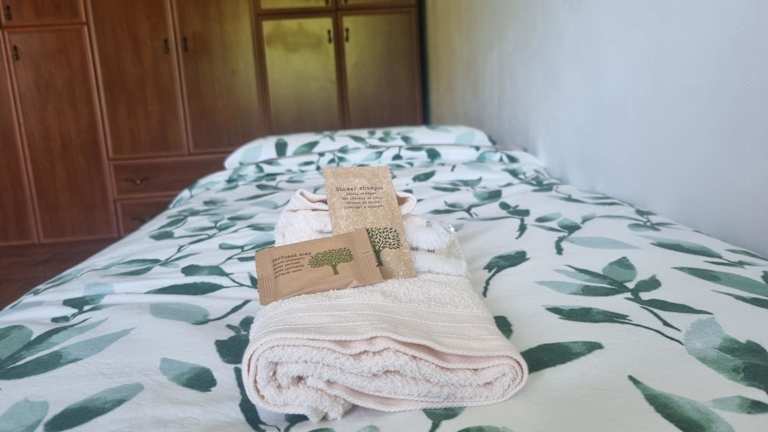 Das Ferienhaus verfügt über zwei Schlafzimmer, ein Wohnzimmer und ein Badezimmer mit Bidet und kostenlosen Pflegeprodukten. Handtücher und Bettwäsche werden bereitgestellt. Klimaanlage und Heizung sind ebenfalls vorhanden.