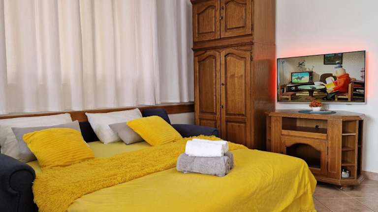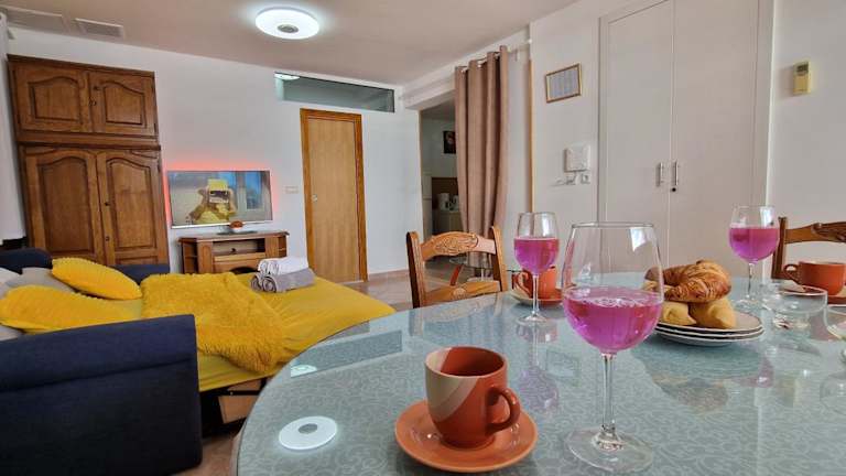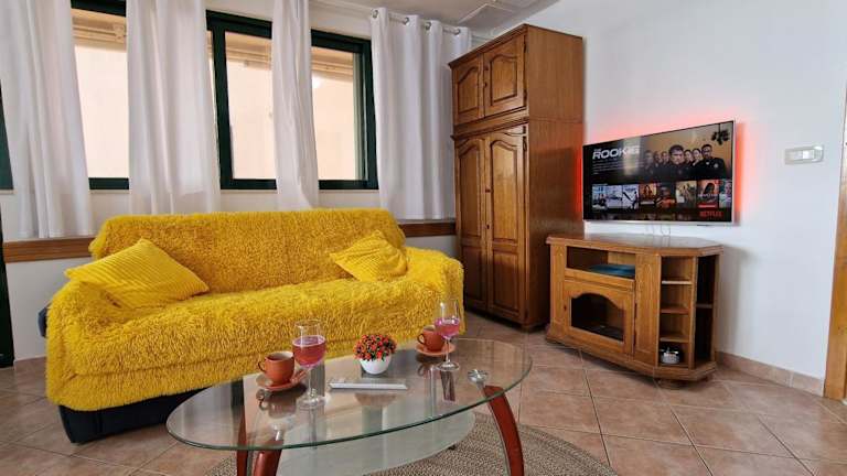 Die Ferienwohnung umfasst 1 Schlafzimmer, ein Wohnzimmer und 2 Badezimmer mit Dusche und Haartrockner. Außerdem sind Handtücher und Bettwäsche verfügbar. Die Unterkunft bietet sowohl eine Terrasse als auch einen Balkon.